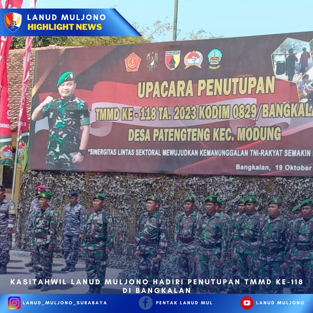 Hari ini, Kasitahwil Lanud Muljono, Mayor Sus Eko menghadiri Upacara penutupan TMMD ke-118 yang digelar di Desa Patengteng, Modung, Bangkalan Madura, Kamis (19/10).